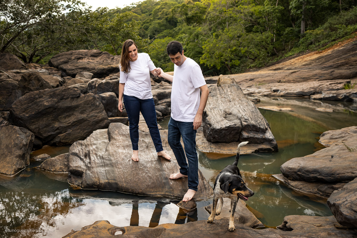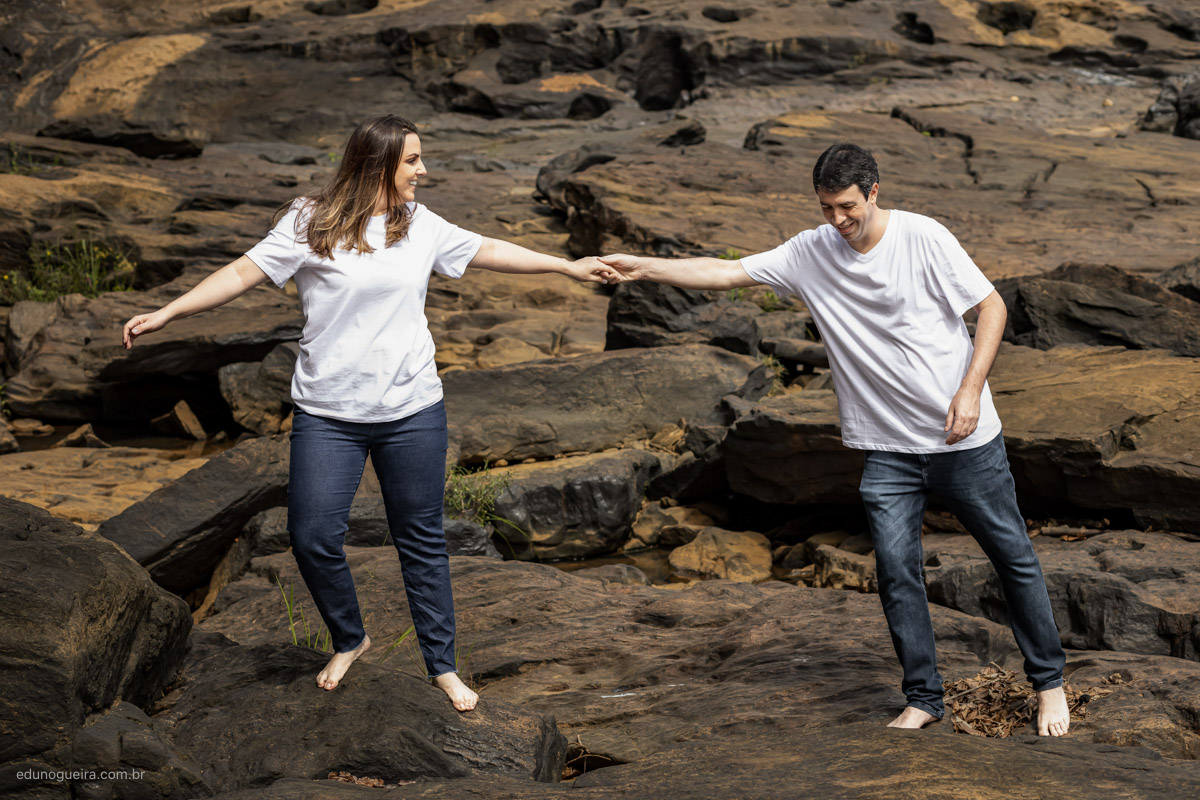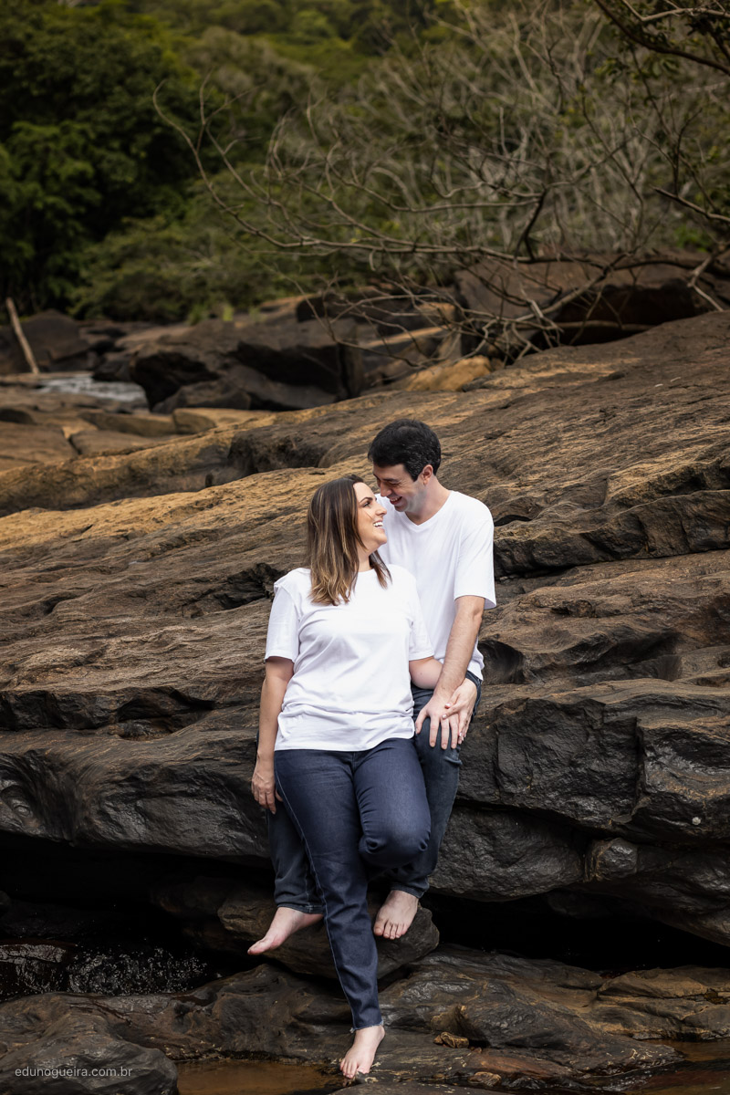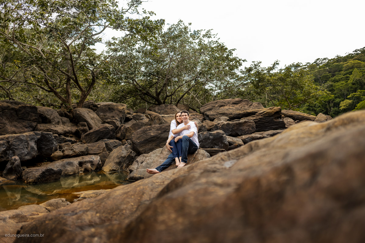 Gleysa e Solano escolheram a cidade de Piacatuba/MG para realizar o ensaio e no meio da estrada encontramos esta parte de pedras, o que deixou o cenário bem rústico e natural, em meio a natureza.